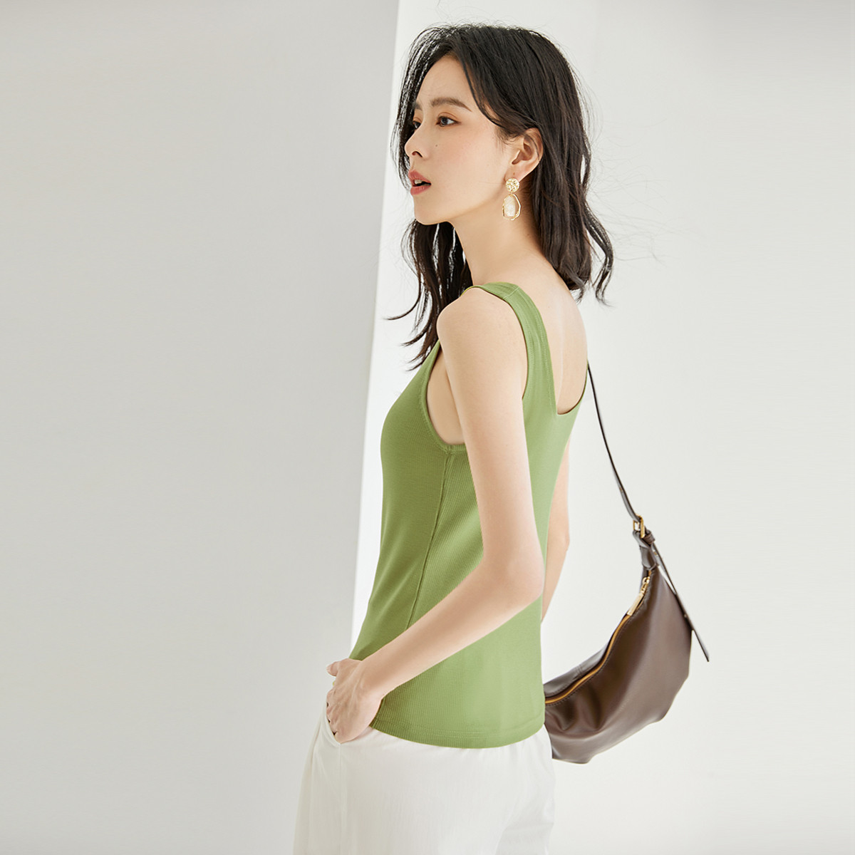 An everyday tank top that looks great on everyone, this piece is a must-have for any wardrobe. Each sleeveless top is made from comfortable ribbed cotton and features wide shoulder straps, flat trim around the collar and arm openings, and a classic crew neck.